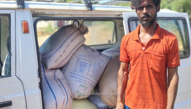 திருச்சி குடிமை பொருள் வழங்கல் குற்ற புலனாய்வுத் துறை காவல் கண்காணிப்பாளர் சியாமளா தேவி உத்தரவின் பேரில் காவல் துணை கண்காணிப்பாளர் R. வின்சென்ட் மேற்பார்வையில் காவல் ஆய்வாளர் மற்றும் காவல் உதவி ஆய்வாளர் தலைமையில் தனிப்படை அமைத்து அரிசி மற்றும் உணவு பொருட்கள் கடத்தல் சம்பந்தமாக திருவெறும்பூர் வாழவந்தான்கோட்டை எழிழ் நகர் வேங்கூர் கூத்தைப்பார் ஆகிய பகுதிகளில் ரோந்து சுற்றி பின்னர் கிடைத்த ரகசிய தகவலின் பேரில் திருவெறும்பூர் – வேங்கூர் சாலையில் கூத்தைப்பார் பொன் அரசு காத்த அம்மன் கோயில் அருகில் வாகனத்தணிக்கை செய்து கொண்டிருந்த போது வடக்கில் இருந்து தெற்கு பக்கம் நோக்கி வந்த வெள்ளை நிற மாருதி ஆம்னி வேனை நிறுத்தி சோதனை செய்து பார்க்க அதில் 30 மூட்டைகளில் சுமார் 1500 கிலோ பொது விநியோகத் திட்ட ரேஷன் அரிசி இருந்தது கண்டுபிடிக்கப்பட்டது.