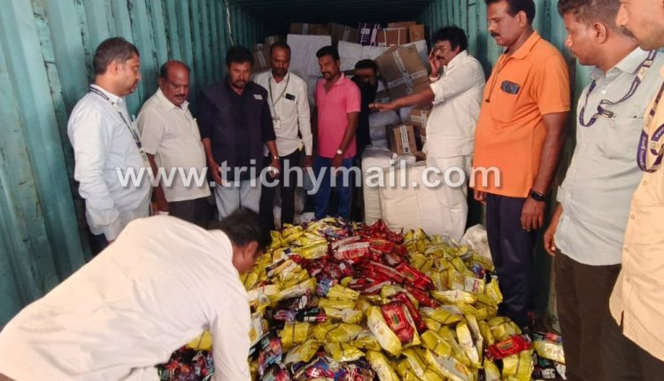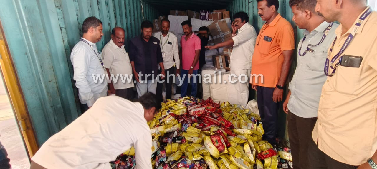 மேலும் இதனை தொடர்ந்து மேற்படி போசாங்கு என்பவரை விசாரித்ததின் பேரிலும்  கிடைத்த  தகவலின் அடிப்படையிலும் நேற்று மதியம் 2 மணிக்கு திருச்சி, பஞ்சப்பூர் அருகே பிரபல பார்சல், அலுவலகம் சென்று கண்டெய்னர் லாரி KA01AH4849 வாகனத்தை சோதனை செய்த பொழுது தமிழக அரசால் தடை செய்யப்பட்ட பான்பராக் மற்றும் குட்கா பொருட்கள் 190 கிலோ இருந்தது கண்டுபிடிக்கப்பட்டது.