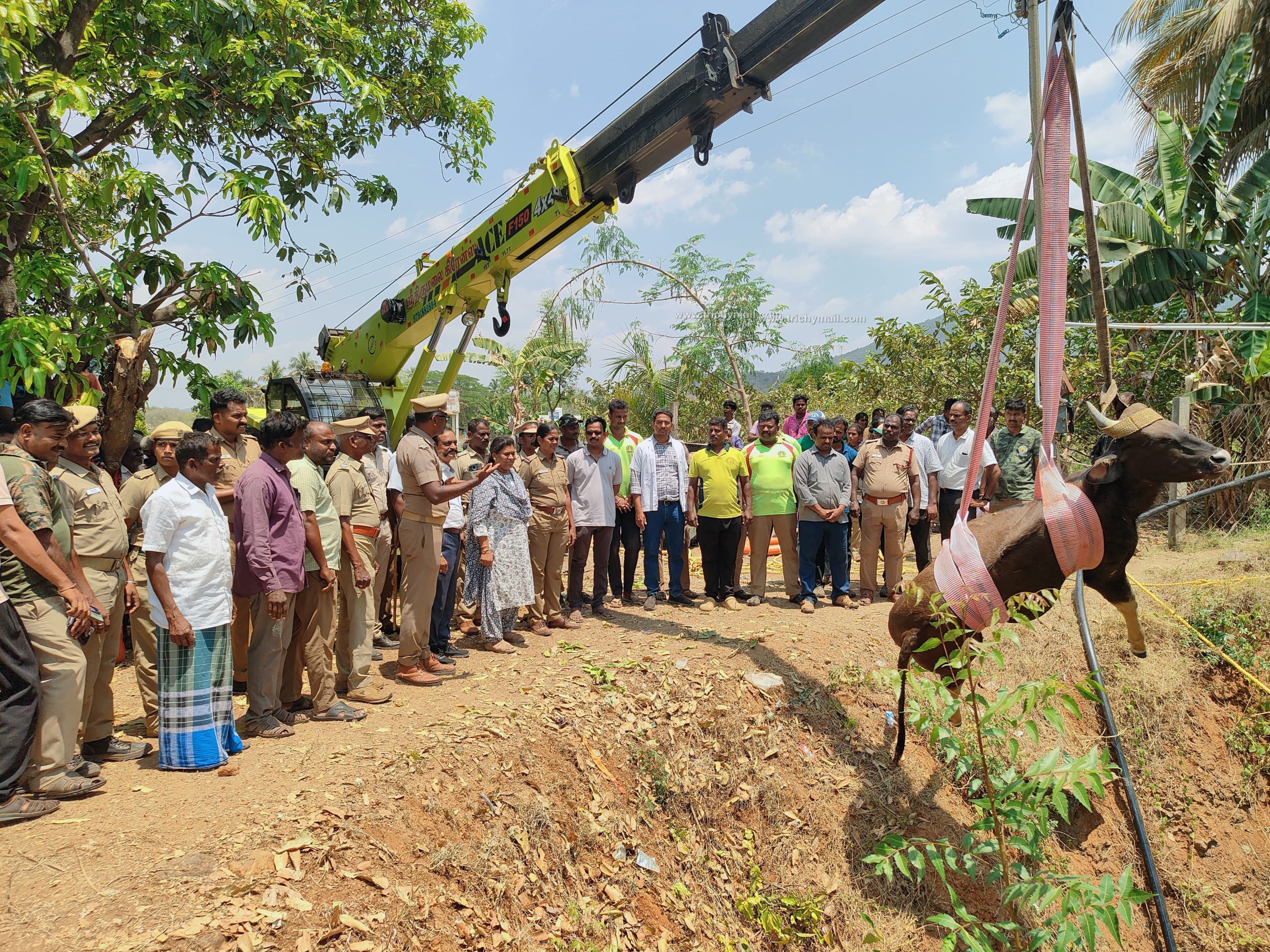 திருச்சி மாவட்டம் மணப்பாறை அடுத்த புத்தாநத்தம் அருகே உள்ள காரைக்குளம் பகுதியைச் சேர்ந்த ராமசாமி 60 என்பவருக்கு சொந்தமான சுமார் 50 அடி ஆழமுள்ள விவசாய பாசன கிணற்றில் நேற்று இரவு அருகே உள்ள குமரிக்கட்டி, கருப்பு ரெட்டியபட்டி ஆகிய மலைப் பகுதியில் இருந்து சுமார் 15-க்கும் மேற்பட்ட காட்டெருமைகள் உணவு மற்றும் தண்ணீருக்காக வயல் பகுதியில் வந்த போது எதிர்பாராத விதமாக நான்கு காட்டெருமைகள் தவறி விழுந்துள்ளது.