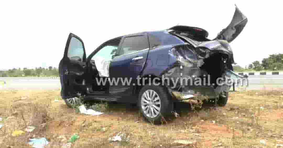 கொண்டிருந்தபோது திடீரென ஓட்டுனரின் கட்டுப்பாட்டை இழந்து சாலையின் மையப்பகுதியில் தடுப்புக் கம்பியில் மோதி விபத்துக்குள்ளானது. இந்த விபத்தில் பாலகிருஷ்ணன் சம்பவ இடத்திலேயே உயிரிழந்தனர். படுகாயமடைந்த 6 பேர் திருச்சி அரசு மருத்துவமனைக்கு கொண்டு சென்ற நிலையில் வழியிலேயே ஏழுமலை பரிதாபமாக உயிரிழந்தார். மற்ற 5 பேர் திருச்சி அரசு மருத்துவக்கல்லூரி மருத்துவமனையில் சிகிச்சை பெற்று வருகின்றனர். இந்த விபத்து குறித்து வையம்பட்டி போலீசார் வழக்குப்பதிவு செய்து விசாரணை நடத்தி வருகின்றனர்.