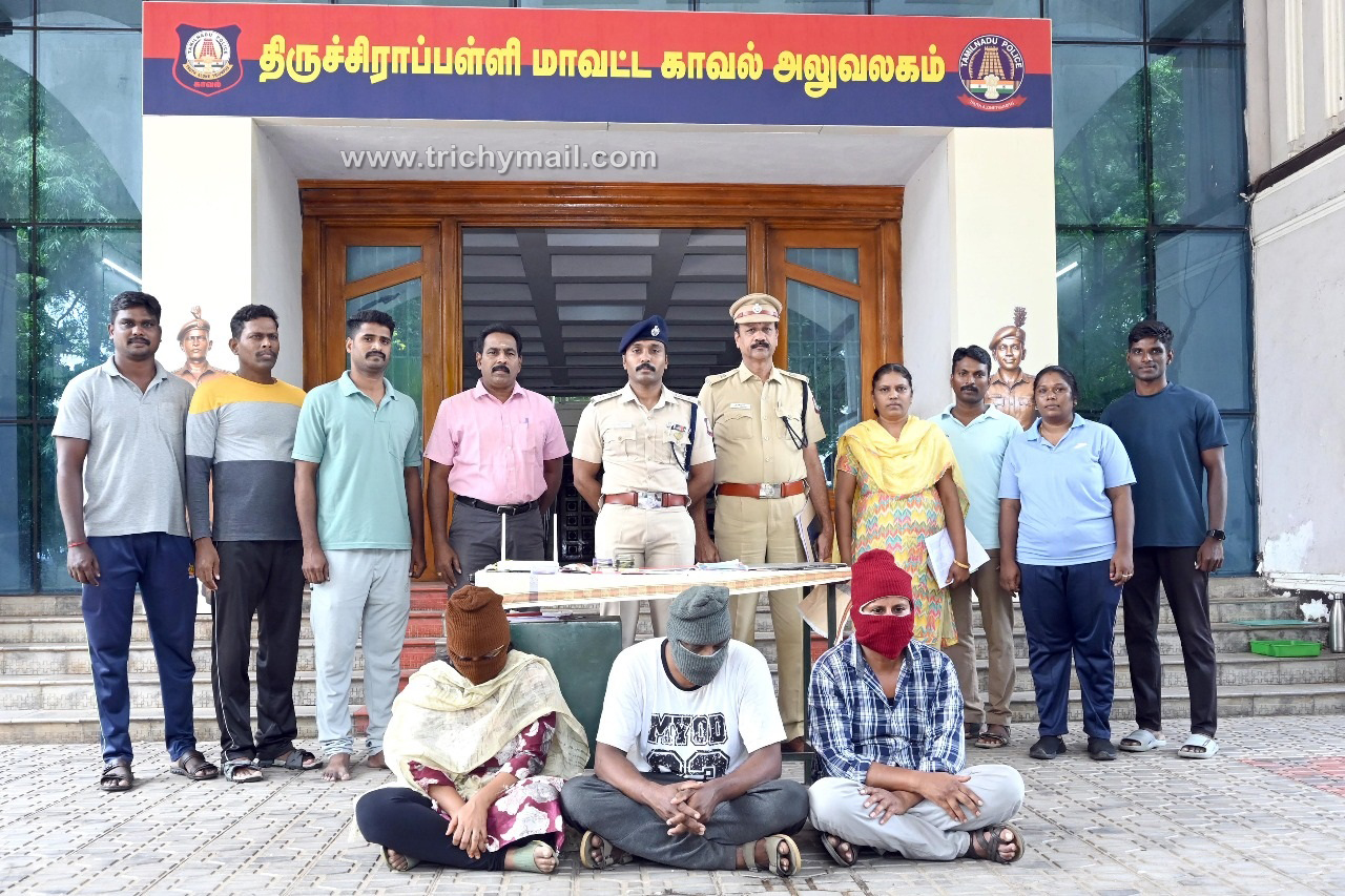இந்நிலையில் எதிரிகளை துப்பு வைத்து, அவர்கள் பயன்படுத்திய செல்போன் எண்களை ஆய்வு செய்தும், எதிரிகள் திருப்பூரில் இருப்பதாக கிடைத்த தகவலின்பேரில் நேற்று (19.09.2025) இரவு தனிப்படையினர் அங்கு சென்று வழக்கின் எதிரிகள் ஸ்ரீனிவாசன் (43), கவிதா (33), கணபதி ,ஜோதிராமன் ஆகியோரை கைது செய்து திருச்சி சைபர் கிரைம் காவல் நிலையத்திற்கு அழைத்து வந்து வாக்குமூலம் நீதிமன்றத்தில் ஆஜர்படுத்தி சிறையில் அடைத்தனர். . மேலும் அவர்கள் மோசடிக்கு பயன்படுத்திய மொபைல்போன்கள் -10, லேப்டாப் -1, மோடம் –1, சிம் கார்டு –10 மற்றும் வங்கி கணக்கு புத்தகங்கள் ஆகியவை பறிமுதல் செய்யப்பட்டுள்ளது.