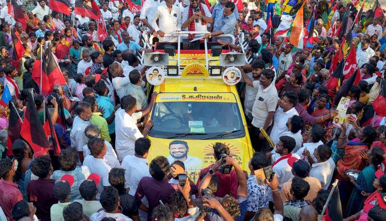 மண்ணச்சநல்லூர் சட்டப்பேரவை உறுப்பினர் எஸ்.கதிரவன் மண்ணச்சநல்லூர் தொகுதி முழுவதும் சூறாவளி சுற்றுப்பயணம் மேற்கொண்டு பொதுமக்களிலேயே உதயசூரியன் சின்னத்தில் வாக்குகள் சேகரித்து வருகிறார்.
