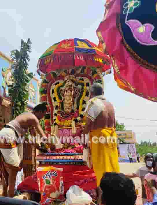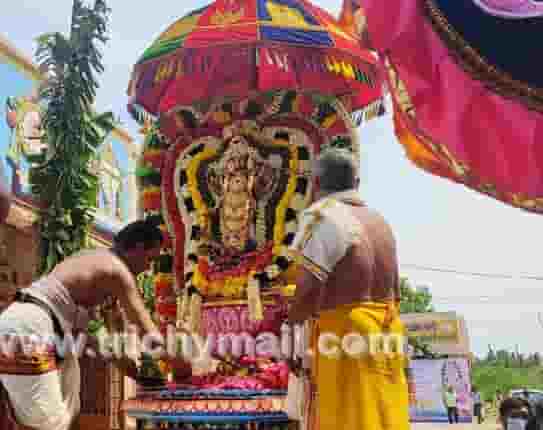 மும்மூர்த்திகள் ஸ்தலமாக விளங்கும் திருச்சி உத்தமர் கோவிலில் வைகாசி தேர் திருவிழாவின் முக்கிய நிகழ்ச்சியன பிச்சாண்டேஸ்வரர் யாசகம் பெறும் திருவீதி உலா வெகு விமர்சையாக நடைபெற்று வருகிறது – வீடு விடாக செல்லும் பிச்சாண்டேஸ்வரருக்கு மக்கள் பூ,பழங்கள்,பச்சை அரிசி,வெல்லம்,பசு நெய் உள்ளிட்ட பல பொருட்களை யாசகமாக வழங்குகின்றனர்.