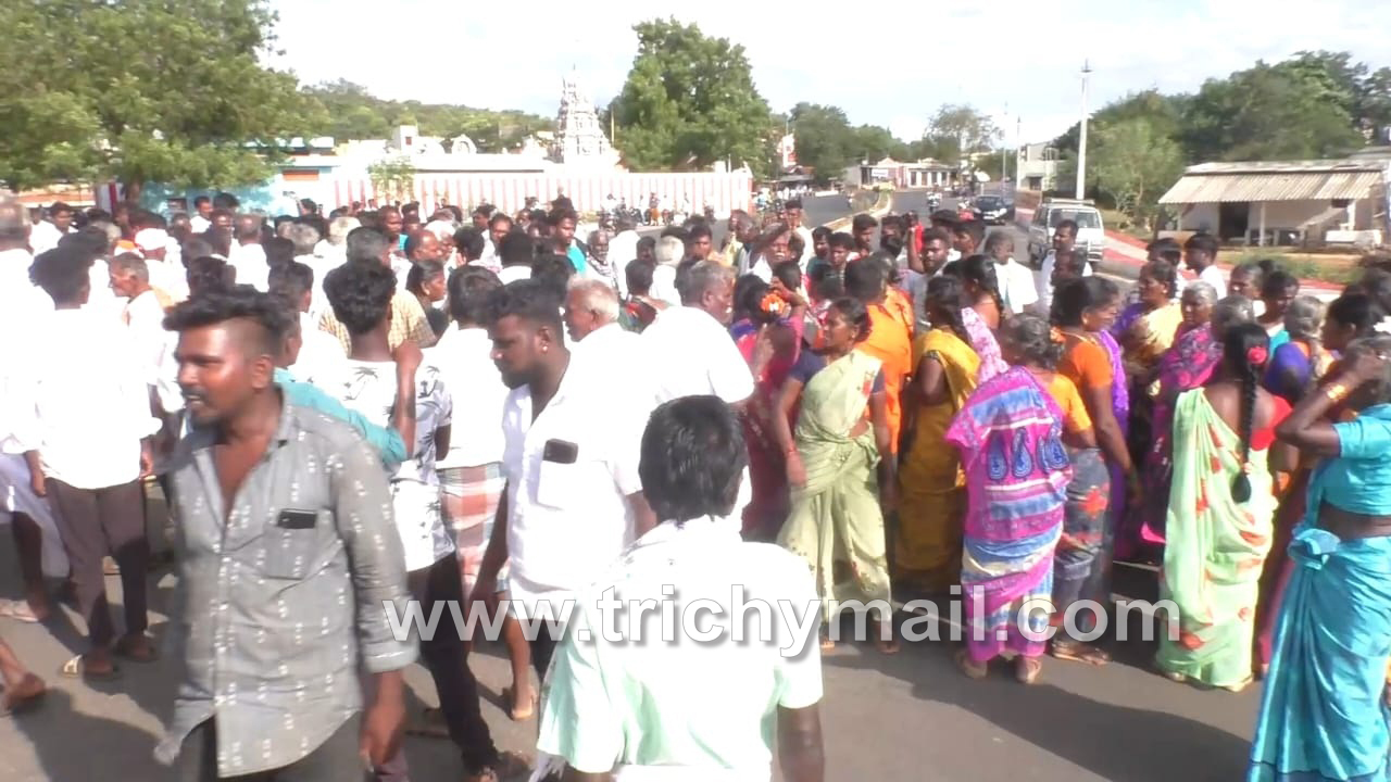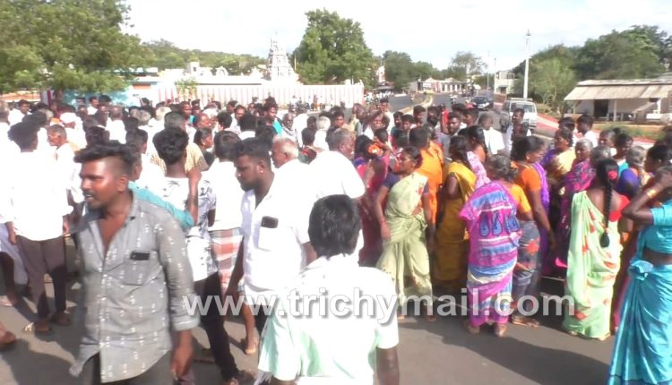 மணப்பாறை அருகே கோவில் திருவிழா நடத்த அனுமதிக்க கோரி நூற்றுக்கணக்கான பொதுமக்கள் திடீர் போராட்டம் நடத்தியதால் பரபரப்பு.