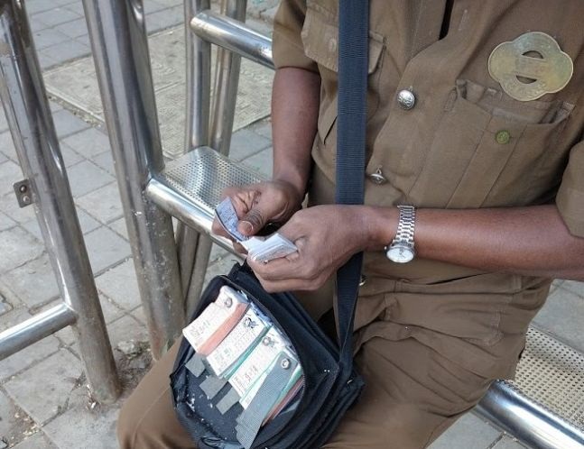 திருச்சி ஜூலை 24 புதுக்கோட்டை மாவட்டம் அண்டக்குளம் கலிங்கராயன்பட்டி பகுதியைச் சேர்ந்தவர் முருகேசன். இவரது மகன் சந்தனகுமார் (வயது 22). திருச்சி – புதுக்கோட்டை அரசு பஸ் கண்டக்டர். இவர் பஸ்ஸில் பணியின் போது தனது கைப்பையை வைத்திருந்தார். பஞ்சப்பூர் பஸ் நிலையத்திற்கு பஸ் வந்ததும் கைப்பையை பஸ்ஸில் சைடு கண்ணாடி அருகில் வைத்து விட்டு அலுவலகத்திற்கு கையெழுத்து போடச் சென்றார். பின்னர் வந்து பார்த்தபோது கைப்பையை காணவில்லை. உடனே இது குறித்து எடமலைப்பட்டிபுதூர் குற்றப்பிரிவு போலீசில் புகார் அளித்தார். கைப்பையில் 43,875 ரூபாய் மதிப்புள்ள பஸ் டிக்கெட்டுகள், டி.சி, மார்க் சீட், ஏ.டிஎ.ம் கார்டு ஆகியவை இருந்தது. இது குறித்து எடமலைப்பட்டிபுதூர் குற்றப்பிரிவு போலீஸ் சப்-இன்ஸ்பெக்டர் அன்புச்செல்வி வழக்குப் பதிந்து விசாரணை நடத்தி வருகிறார்.