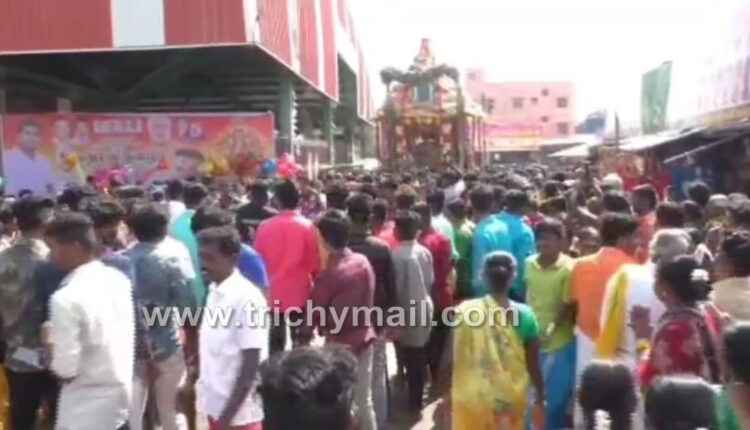 திருச்சி மாவட்டம் சமயபுரம் அருகே இனாம் சமயபுரத்தில் உள்ள அருள்மிகு ஆதி மாரியம்மன் கோவிலில் மாசி தேரோட்ட விழா இன்று வெகு விமரிசையாக நடைபெற்றது. திரளான பக்தர்கள் பங்கேற்று தேரை வடம் பிடித்து இழுத்துச் சென்றனர்.