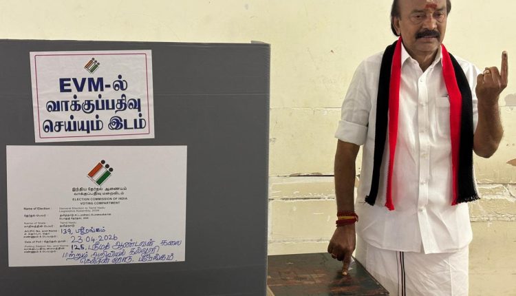 ஸ்ரீரங்கத்தில் அதிமுக வேட்பாளர் மனோகரன் வாக்களித்தார்