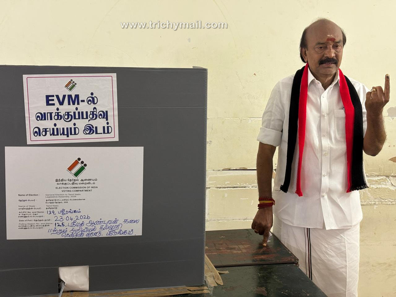 திருச்சி, ஏப்.23 தமிழ்நாடு சட்டமன்ற பொதுத்தேர்தல் 2026 இன்று காலை 7 மணி தொடங்கி மாலை 6 மணி வரை நடைபெறுகிறது.