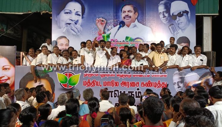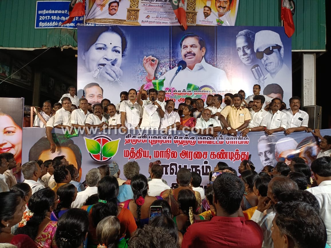 அதிமுக முன்னாள் அமைச்சர் விஜயபாஸ்கர் தலைமையில் நடைபெறும் இந்த ஆர்ப்பாட்டத்தில், திருச்சி புறநகர் தெற்கு மாவட்ட கழக செயலாளர் முன்னாள் எம்பி குமார் முன்னிலை வகித்தார்.