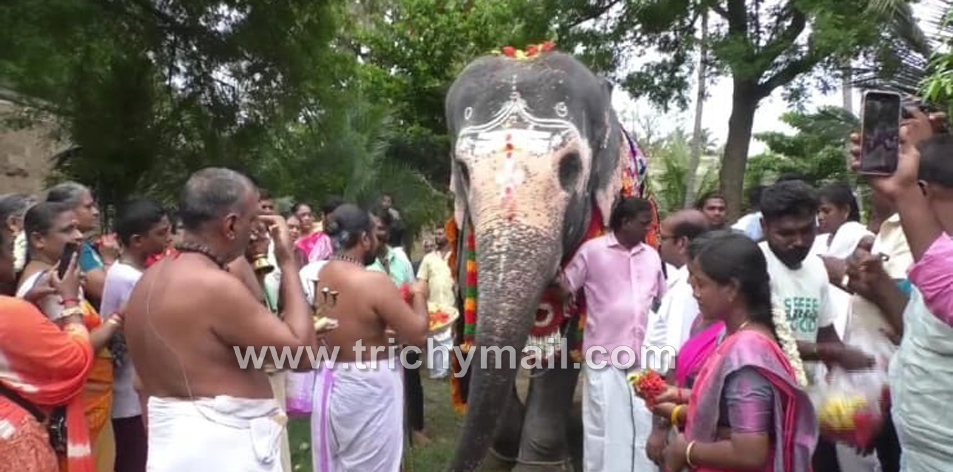 பிறந்த நாள் கொண்டாடிய திருவானைக்காவல் கோவில் யானை அகிலா