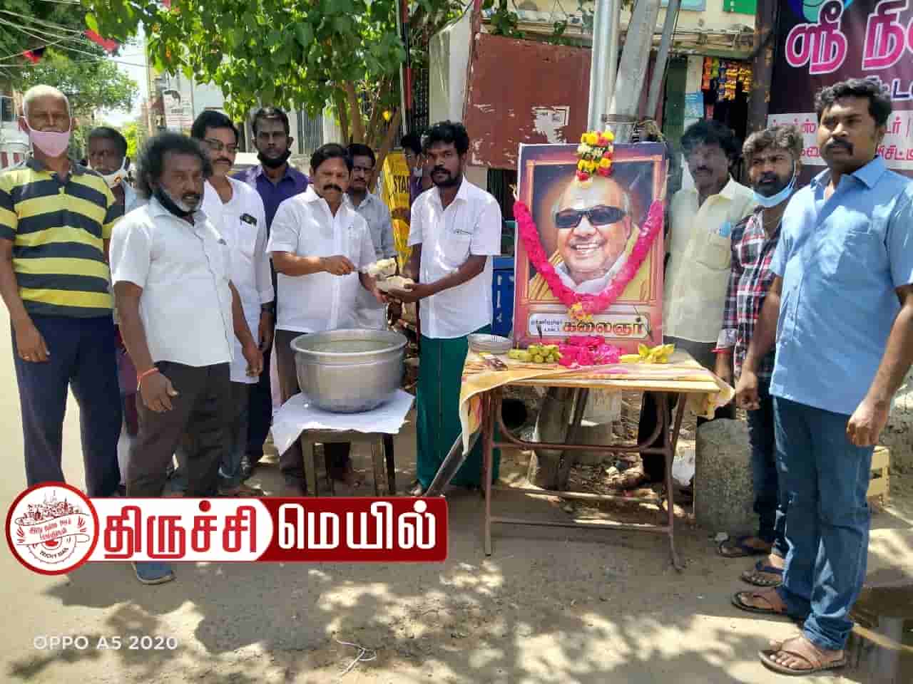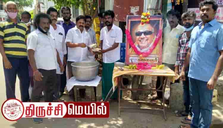 அந்த வகையில் திருச்சி உறையூர் பகுதி திமுக சார்பாக கலைஞரின் திருவுருவ படத்திற்கு மாலை அணிவித்து அன்னதானம் வழங்கப்பட்டது. இதில் உறையூர் பகுதி செயலாளர் கண்ணன் கலந்துகொண்டு அன்னதானத்தை தொடங்கி வைத்தார். 54வது வட்டச்செயலாளர் புத்தூர் ராபின்சன், துணைச் செயலாளர் கார்த்திக், புயல் கிருஷ்ணன், பிரதிநிதிகள் ராஜ்குமார், செந்தில், அருள்ராஜ், அயூப் கான் குமார், அழகு, குமரவேல், பாய் கடை தெரு குமார், கதிர், அவைத்தலைவர் ஆண்ட்ரூஸ் மற்றும் திமுக நிர்வாகிகள் பலர் கலந்து கொண்டனர்.