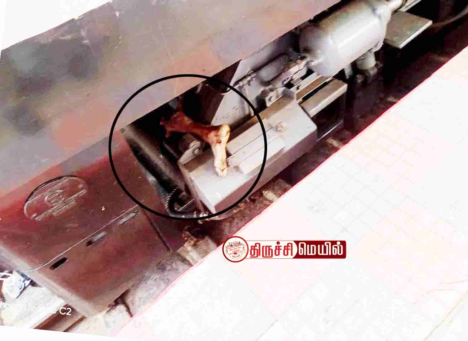 திருச்சி ஜங்சன் ரெயில் நிலையத்தில் மதுரையில் இருந்து சென்னை வரை செல்லும் தேஜஸ் எக்ஸ்பிரஸ் ரெயில் 5-வது பிளாட்பாரத்தில் வந்தது. அப்போது அங்க ரோந்து பணியில் இருந்த ரெயில்வே போலீசார். தேஜஸ் எக்ஸ்பிரஸ் ரெயில் என்ஜினில் துண்டான கால் ஒன்று இருந்ததை கண்டு அதிர்ச்சி அடைந்தனர். இது குறித்து என்ஜின் டிரைவரிடம் கேட்டபோது அவரும் அதிர்ச்சியில் உறைந்தார். எப்படி நடந்தது என்று தெரியவில்லை என்று கூறினார். உடனே ரெயில்வே போலீசாருக்கு தகவல் கொடுத்தனர்.