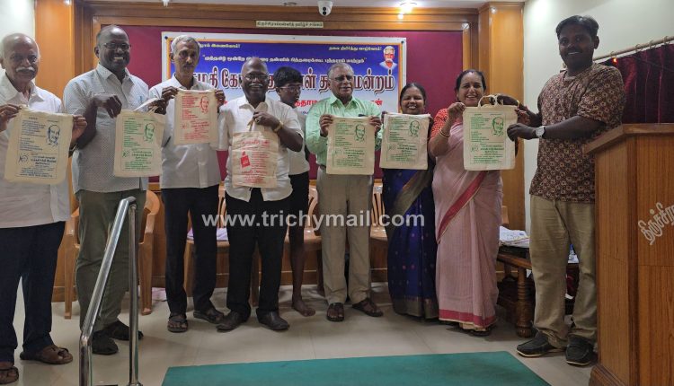 திருச்சி, ஜுலை 4 தண்ணீர் அமைப்பு சார்பில் கோவிந்தம்மாள் தமிழ் மன்ற கூட்டத்தில் சர்வதேச பிளாஸ்டிக் பை இல்லாத தினம் விழிப்புணர்வு நிகழ்வு
