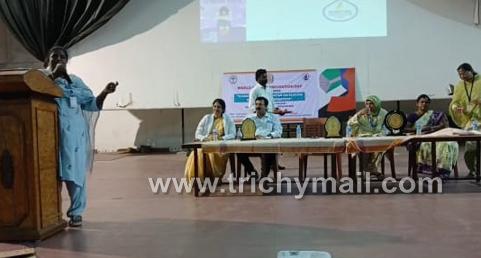 திருச்சி, செப். 13 உலக தற்கொலை தடுப்பு தினத்தை முன்னிட்டு கி.ஆ.பெ விஸ்வநாதம் அரசு மருத்துவக் கல்லூரியில் நடந்த விழிப்புணர்வு நிகழ்ச்சியில் டீன் ஹர்ஷயா பேகம் பங்கேற்பு:-