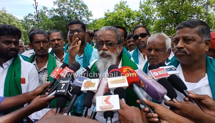 திருச்சி, ஜூன் 28 தேசிய தென்னிந்திய நதிகள் இணைப்பு சங்கத்தின் மாநிலத் தலைவர் அய்யாக்கண்ணு தலைமையில் நூற்றுக்கு மேற்பட்ட விவசாயிகள் திருச்சி நீதிமன்றம் அருகே உள்ள நிர்வாக பொதுப்பணித்துறை அலுவலகத்தை முற்றுகையிட்டு