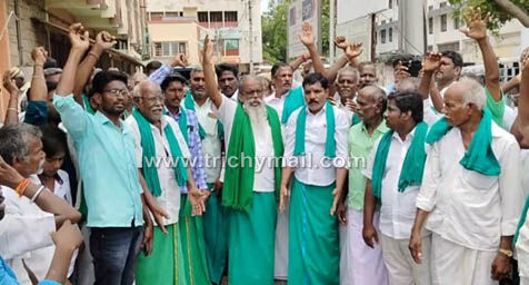 திருச்சியில் விவசாயிகள் ஐஓபி வங்கியை போட்டு பூட்டு போராட்டம் ஈடுபட்ட நூற்றுக்கும் மேற்பட்ட விவசாயிகள் கைது