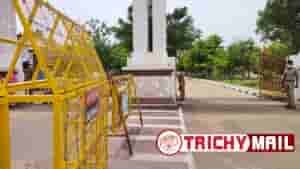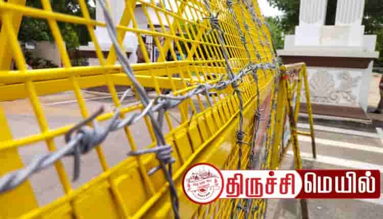 திருச்சி மாவட்ட ஆட்சியர் அலுவலகம் முன்பு காவல்துறையினரால் வைக்கப்பட்டுள்ள ஆளுயர பேரிகார்ட்டு தடுப்புகளின் முன்பகுதியில் தோட்டங்களுக்கு வேலி அமைப்பதற்கு பயன்படும் முள்கம்பி வேயப்பட்டுள்ளன. போராட்ட காலங்களில் இந்த தடுப்புகள் பொதுமக்கள் மற்றும் காவல்துறையினர் மீது விழுந்தால் ரத்த காயம் ஏற்படுவது நிச்சயம்.