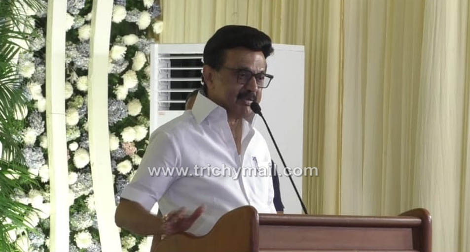 தேர்தல் நெருங்கும் வேளையில் மிகவும் பிஸியாக இருந்தாலும், பாலகிருஷ்ணன் மற்றும் பரணிகுமார் குடும்பத்தின் மீது கொண்டுள்ள பாசத்தின் காரணமாகவே இந்த விழாவிற்கு நான் வந்திருக்கிறேன். திருச்சியில் விரைவில் 10 லட்சம் பேர் பங்கேற்கும் பிரம்மாண்ட மாநாட்டை அமைச்சர் கே.என்.நேரு நடத்த உள்ளார். மணமக்கள் வீட்டிற்கு விளக்காகவும், நாட்டிற்குத் தொண்டர்களாகவும் வாழ வேண்டும் எனப் புரட்சிக்கவிஞர் பாரதிதாசனின் வரிகளைக் கூறி வாழ்த்துகிறேன்.