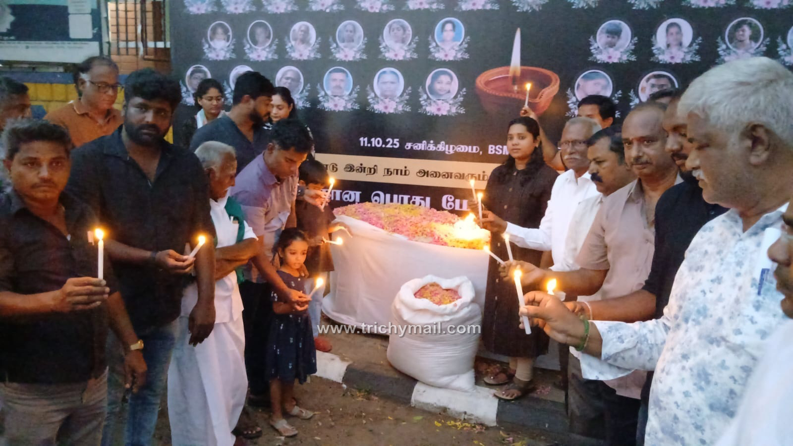 நாடு முழுவதும் பெரும் அதிர்வலையை ஏற்படுத்திய இந்த துயர சம்பவத்தில் உயிரிழந்தவர்களுக்கு 16ம்நாள் துக்கநிகழ்வு அனுசரிக்கும் இந்நாளில், திருச்சி பிஎஸ்என்எல் அலுவலகம் அருகே மக்கள் நலனுக்கான பொதுமேடை என்கிற அமைப்பு சார்பில் அஞ்சலி செலுத்தும் நிகழ்வு நடைபெற்றது.