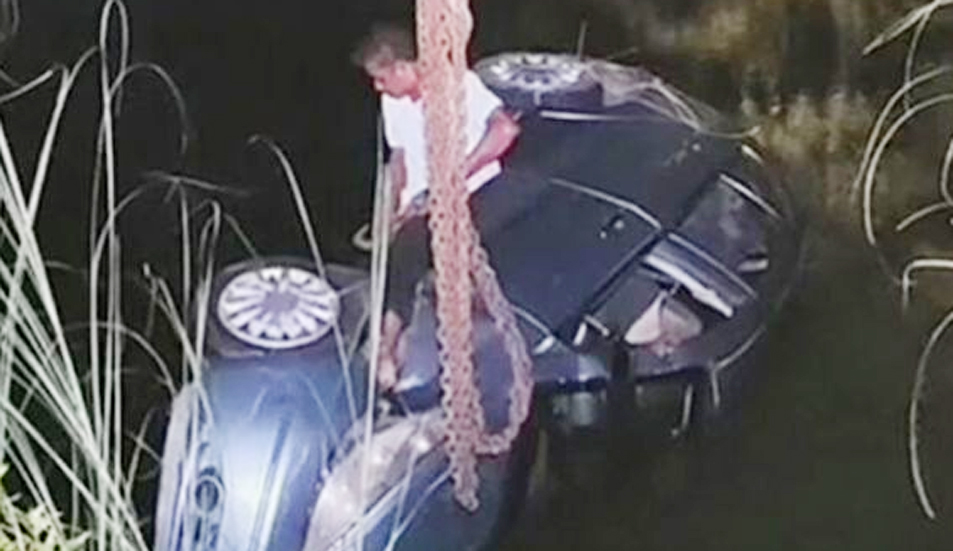 அப்போது வாய்க்காலில் அதிகளவு தண்ணீர் சென்றதால் கார் மெல்ல மெல்ல தண்ணீரில் மூழ்கத் தொடங்கியது. உடனடியாக சுதாரித்துக் கொண்ட முருகன் கார் கண்ணாடியை உடைத்து பிள்ளைகள் இருவரையும் முதலில் காப்பாற்றியுள்ளார்.