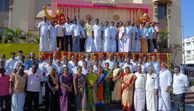 இந்த நிகழ்வில் சேர்மன் துரைராஜ்,முன்னாள் சட்டமன்ற உறுப்பினர் அன்பில் பெரியசாமி உள்ளிட்ட கழக நிர்வாகிகள் பலர் கலந்து கொண்டு மாலை அணிவித்து மரியாதை செலுத்தினர்..