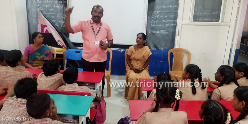 திருச்சி ஸ்ரீரங்கம் டாக்டர் ராஜன் மாநகராட்சி நடுநிலைப் பள்ளியில் குழந்தை உரிமை பாதுகாப்பு குறித்த விழிப்புணர்வு நிகழ்ச்சி பள்ளி தலைமை ஆசிரியர் லில்லி புளோரா தலைமையில் 06.03.23 நடைபெற்றது. மாவட்ட குழந்தை நலக் குழு உறுப்பினர் பிரபு குழந்தைகளுக்கு உள்ள நான்கு வகையான உரிமைகள், குழந்தைத் திருமணம், பாலியல் வன்முறை, குழந்தைத் தொழிலாளர் முறையை தடுத்தலில் மாணவர்களின் பங்கு மற்றும் குழந்தைகளுக்கான இலவச கட்டணமில்லா தொலைபேசி எண் 1098 குறித்து விழிப்புணர்வு வழங்கினார். ஐடிஎப்சி பஸ்ட் பாரத் நிறுவனத்தின் மேலாளர் சந்துரு வாழ்த்துரை வழங்கினார்.ஆசிரியர் லெட்சுமி நன்றி கூறினார்.