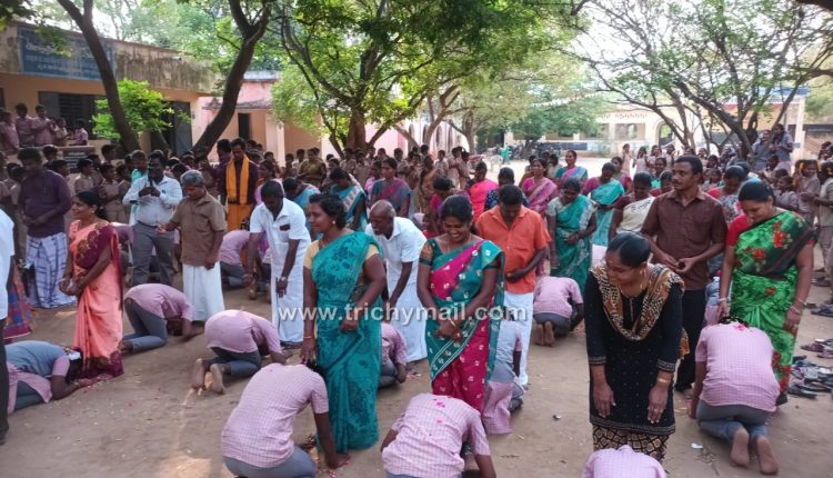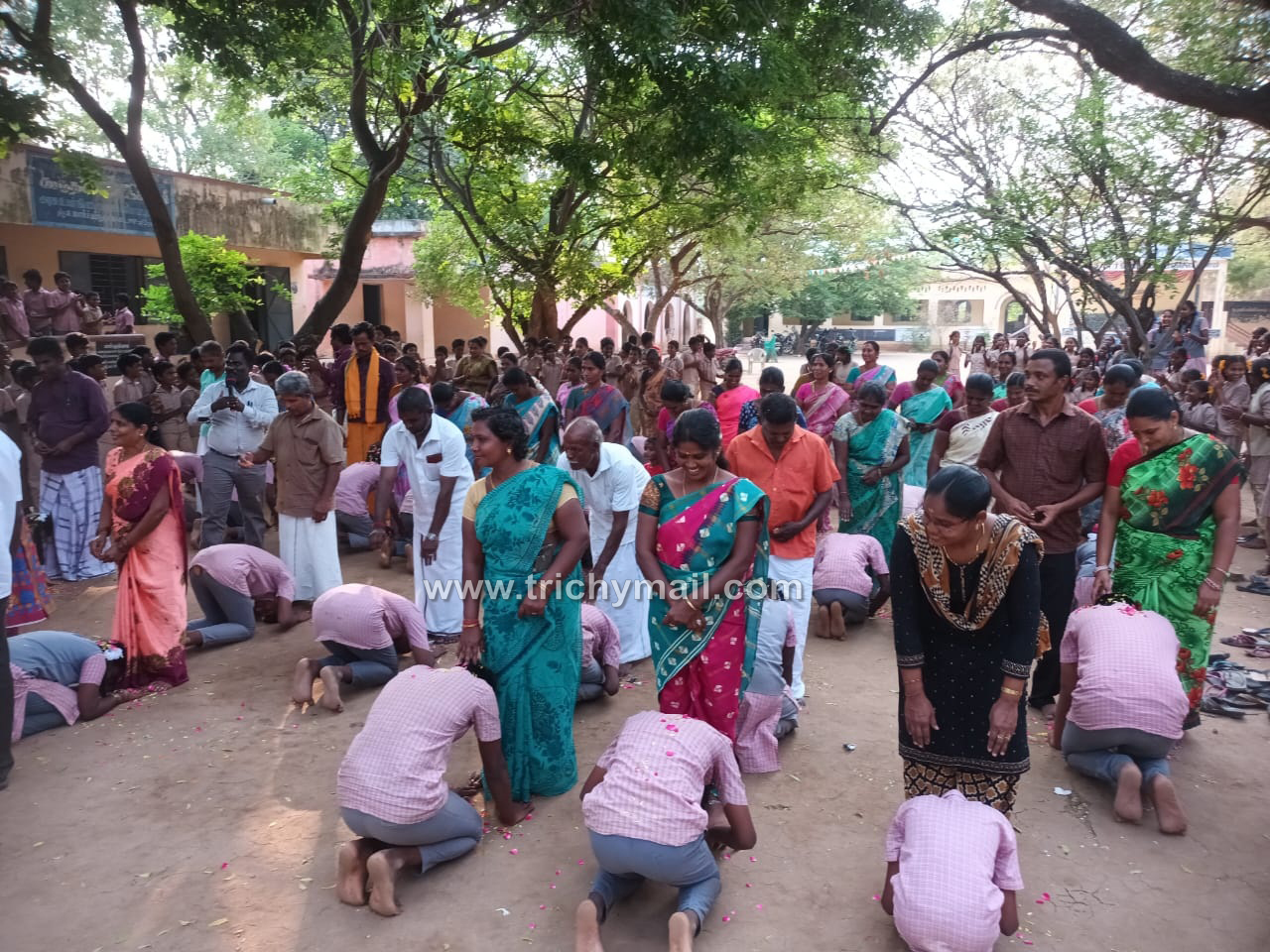 இந்நிலையில் 10 ஆம் வகுப்பு தேர்வு எழுதவுள்ள 73 மாணவ மாணவிகளின் தங்களின் பெற்றோரை வணங்கிபாதை பூஜை செய்யும் நிகழ்ச்சி நடைபெற்றது. இந்நிகழ்ச்சியை பள்ளி தலைமை ஆசிரியர் ஜோதி (பொறுப்பு) ஏற்பாடு செய்திருந்தார். அதை ஏற்று அப்பகுதி பெற்றோர்கள் நேற்று பள்ளியில் உள்ள வளாகத்தில் பாத பூஜை மற்றும் நிகழ்ச்சி நடைபெற்றது. நிகழ்ச்சியில் ஒவ்வொரு பிள்ளைகளும் பெற்றோரின் பாதத்தின் கீழ் அமர்ந்து குங்குமம் சந்தனம் பெற்றோர் காலில் இட்டு ஆசி பெற்றனர். பெற்றோர்கள் மலர்களை தூவி பிள்ளைகள் நடைபெற இருக்கும் பத்தாம் வகுப்பு பொதுத்தேர்வில் அதிக அளவில் மதிப்பெண் பெற்று வெற்றி அடைய வேண்டும் என்று கண்ணீர் மல்க ஆசி வழங்கினார்கள். அரசு பள்ளிகளில் இதுபோன்று பெற்றோர்களை அழைத்து பாத பூஜை செய்வது எங்கள் பகுதியில் இதுவே முதல்முறை என்று கூறினார்