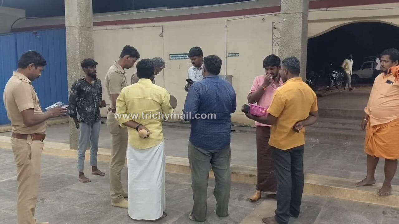 திருச்சி, டிச.11 மணப்பாறையில் இந்து அமைப்பினர் சிதறு தேங்காய் உடைக்க வந்தவர்களை தடுத்து நிறுத்திய காவல்துறையினர்.