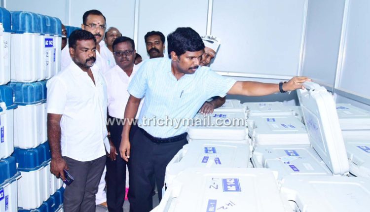 திருச்சி, மார்ச்13 திருச்சியில் மின்னணு வாக்குப்பதிவு இயந்திர பாதுகாப்பு கிடங்கினை அனைத்துக் கட்சி பிரமுகர்கள் முன்னிலையில் மாவட்ட ஆட்சியர் ஆய்வு