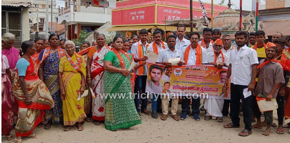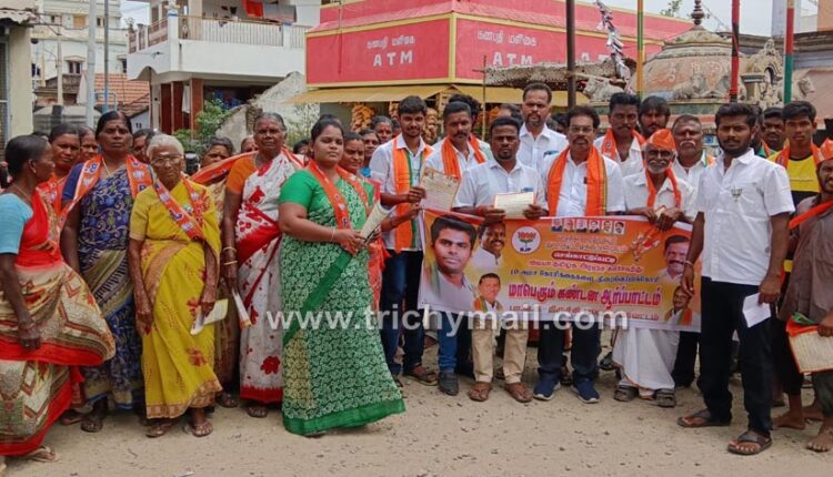 திருச்சி மாவட்டம் துறையூர் அடுத்துள்ள செங்காட்டுப்பட்டி பகுதியில் பாஜகவினர் திமுக அரசை கண்டித்து பத்து அம்ச கோரிக்கை வலியுறுத்தி கண்டன ஆர்ப்பாட்டத்தில் ஈடுபட்டனர், தேர்தல் வாக்குறுதியாக தமிழகத்தில் உள்ள அணைத்து குடும்பத் தலைவிகளுக்கான உரிமைத் தொகை ஆயிரம் ரூபாய் மாதந்தோறும் வழங்கபடும் என்று தேர்தல் வாக்குறுதி அளித்துவிட்டு இப்பொழுது தேர்ந்தெடுக்கப்பட்ட மகளிருக்கு மட்டும் வழங்குவதாக அறிவித்து இருப்பதை கண்டித்தும் அனைத்து குடும்பத் தலைவிகளுக்கும் உரிமைத்தொகை வழங்க வேண்டும் என்றும், மதுக்கடைகளை மூடி தமிழகத்தில் பூரண மதுவிலக்கு தமிழகத்தில் அமல்படுத்த வேண்டும் என்று,10 அம்ச கோரிக்கையை வலியுறுத்தி செங்காட்டுப்பட்டி பகுதியில் துறையூர் பாஜக ஒன்றிய துணைதலைவர் ஆனந்த் தலைமையில் ஆர்ப்பாட்டம் நடைபெற்றது. ஆர்ப்பாட்டத்தில் திமுக அரசே திமுக அரசே அனைத்து குடும்பதலைவிகளுக்கும் ஆயிரம் ரூபாய் வழங்கிடு, காட்டாதே காட்டாதே பெண்களிடம் பாரபட்சம் காட்டாதே,தடுத்து நிறுத்து தடுத்து நிறுத்து கஞ்சா விற்பனையை தடுத்துநிறுத்து, அனுமதிக்காதே அனுமதிக்காதே கள்ள சாராயத்தை அனுமதிக்காதே போன்ற கண்டன கோஷங்கள் ஆர்ப்பாட்டத்தில் எழுப்பப்பட்டது, இந்நிகழ்ச்சியில் சிறப்பு விருந்தினராக தர்மராஜ், கூட்டுறவு பிரிவு மாவட்டதுணைத் தலைவர் தனபால் ,அரசுதொடர்பு பிரிவுமாவட்டசெயலாளர் நிதீஷ்குமார், தலைவர் குமரேசன், ஒன்றிய இளைஞரணி செயலாளர் அகிலன்,