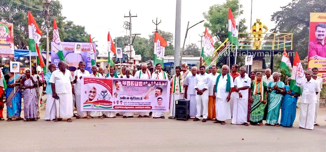 திருச்சி, டிச.22 திருச்சி மாவட்டம் லால்குடி அருகே புள்ளம்பாடியில் உள்ள காமராஜர் சிலை முன்பு 100 நாள் வேலை திட்டத்தின் பெயரை மத்திய அரசு மாற்றுவதை கண்டித்து காங்கிரஸ் கட்சியினர் கண்டன போராட்டம் திருச்சி வடக்கு மாவட்ட காங்கிரஸ் கமிட்டியின் பொருளாளர் திருச்சி இளையராஜன் தலைமையில் நடைபெற்றது. இதில் மத்திய அரசுக்கு எதிராக கண்டன கோசங்களை எழுப்பி ஆர்ப்பாட்டத்தில் ஈடுபட்டனர்.