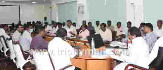 திருச்சிராப்பள்ளி மாநகராட்சி மாண்புமிகு மேயர் மு.அன்பழகன்  தலைமையில் வரி மற்றும் வரியில்லா இனங்களின் நிலுவைகளை வசூலிக்க கலந்தாலோசனைக்கூட்டம் நடைபெற்றது.