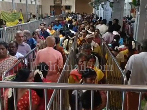 சமயபுரம் மாரியம்மன் கோவிலில் அலை மோதிய பக்தர்களின் கூட்டம்.