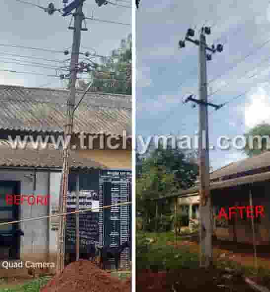 திருச்சி திருவரம்பூர் தொகுதி போலீஸ் காலனி EB போஸ்ட் மெயின் ரோட்டில் உள்ள மின் கம்பம் பழுதடைந்து இருப்பதாக மாண்புமிகு பள்ளிக்கல்வித்துறை அமைச்சர் அன்பில் மகேஸ் பொய்யாமொழி அவர்களுக்கு .போலீஸ் காலனி பகுதி மக்கள் அந்த மின் கம்பத்தை மாற்றித் தருமாறு வைத்த கோரிக்கையை ஏற்று உடனடியாக மின்வாரிய அதிகாரிகளை தொடர்பு கொண்டு அந்த மின் கம்பத்தை மாற்றி தரும்படி கூறினார் இன்று அந்த மின் கம்பம் சரி செய்யப்பட்டுள்ளது என அந்தப் பகுதியில் மக்கள் அமைச்சர் அவர்களுக்கு நன்றி தெரிவித்துள்ளனர்