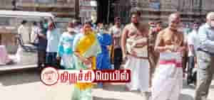 சமயபுரம், ஸ்ரீரங்கத்தில் துர்கா ஸ்டாலின் தரிசனம்; பாதையாத்திரையாக நடந்து வந்தார்