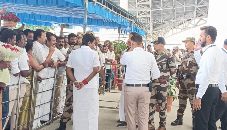 எடப்பாடி பழனிசாமியை வரவேற்க அனுமதி மறுப்பு : விமான நிலைய அதிகாரிகளுடன் முன்னாள் அமைச்சர்கள் வாக்குவாதம்