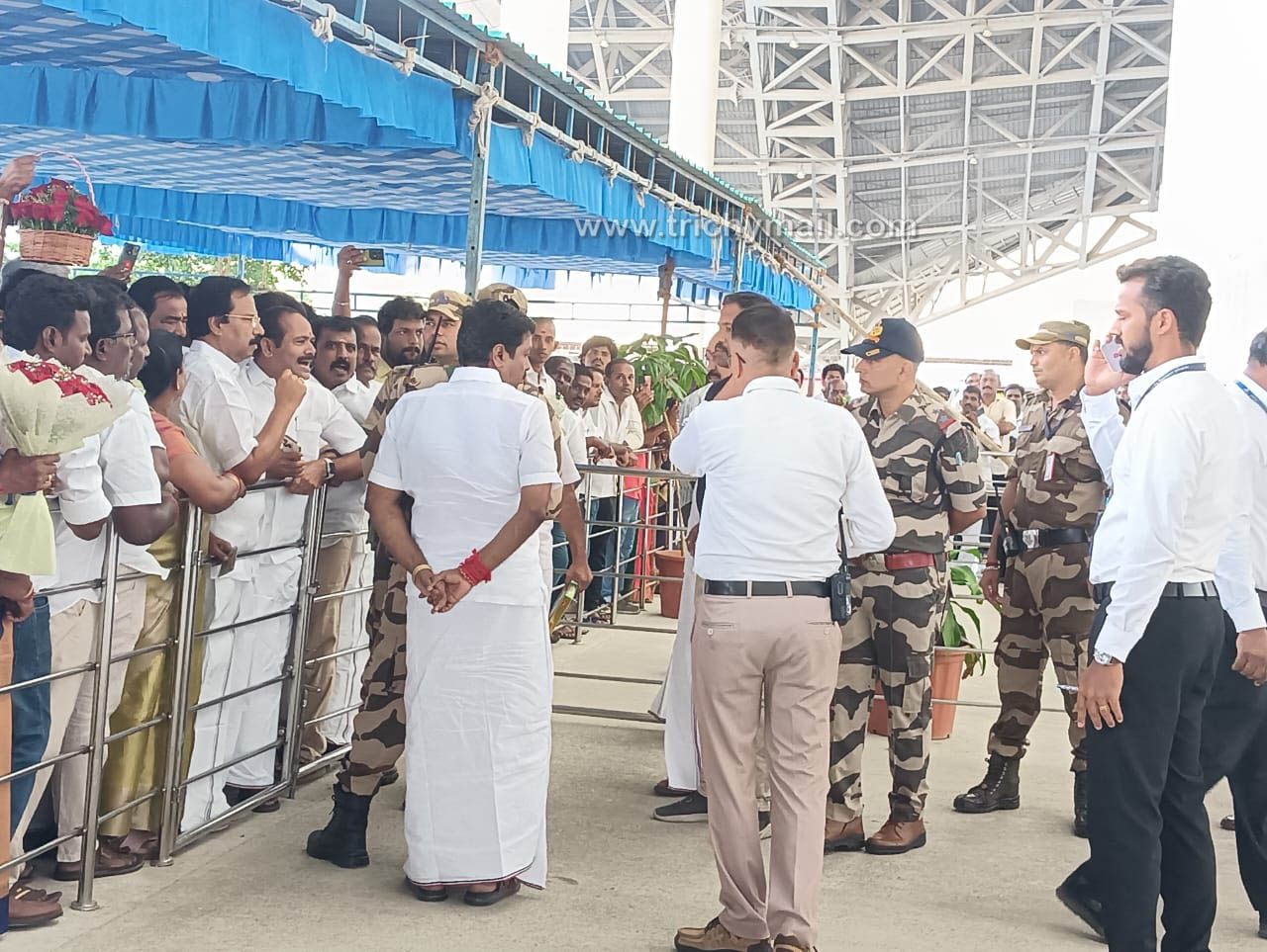 திருச்சி, மார்ச் 11 திருச்சி விமான நிலையத்திற்கு இன்னும் சற்று நேரத்தில் அதிமுக பொதுச்செயலாளர் எடப்பாடி பழனிச்சாமி வருகை தர உள்ளார். வி.ஐ.பிக்கள் வரும் வழியாக வரும் எடப்பாடி பழனிச்சாமியை வரவேற்க செல்ல முன்னாள் எம்.பி குமார், முன்னாள் அமைச்சர்கள் சிவபதி, வளர்மதி உள்ளிட்ட முக்கிய நிர்வாகிகள் முன்கூட்டியே அனுமதி கடிதம் வழங்காததால் அவர்களை வி.ஐ.பி அறைக்குள் அனுமதிக்க முடியாது என விமான நிறைய அதிகாரிகள் தெரிவித்தனர் இதனால் அதிமுகவினர் விமான நிலைய அதிகாரிகளுடன் வாக்குவாதத்தில் ஈடுபட்டனர்.
