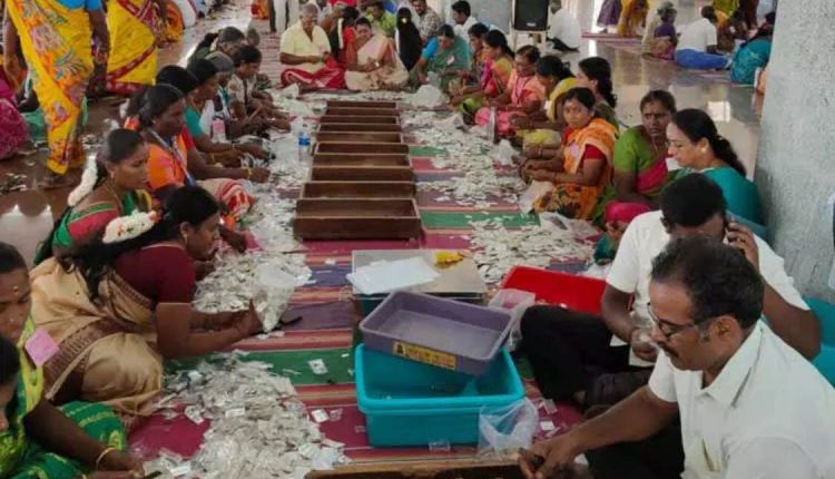 அப்படி கடந்த 14 நாட்களில் பக்தர்களால் செலுத்தப்பட்ட காணிக்கை உண்டியல்களை கோவில் இணை ஆணையர் சூரிய நாராயணன் தலைமையில் கோவில் ஊழியர்கள், வங்கி ஊழியர்கள் சமூக ஆர்வலர்கள் கோவில் மண்டபத்தில் எண்ணப்பட்டது.