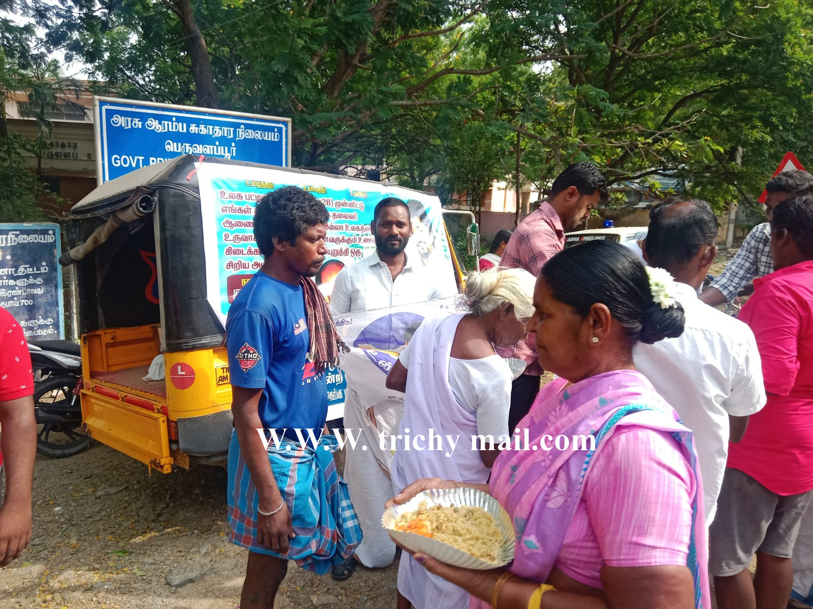 திருச்சி மாவட்டம் லால்குடி அருகே புள்ளம்பாடி ஒன்றியம் பெருவளப்பூர் கிராமத்தில் பட்டினி இல்லா உலகத்தை உருவாக்க வேண்டும் என வலியுறுத்தி தமிழக வெற்றி கழக தலைவரின் ஆணைக்கிணங்க தமிழக வெற்றிக் கழகத்தின் மாநில பொதுச் செயலாளர் .புஸ்ஸி ஆனந்த் ஆலோசனைபடி திருச்சி மாவட்ட பொறுப்பாளரும், திருச்சி தெற்கு மாவட்ட தலைவருமான குடமுருட்டி T. கரிகாலன் வழிகாட்டுதல் படி புள்ளம்பாடி ஒன்றிய தலைமை தலைவர் NPK. வசந்த் தலைமையில் திருச்சி தெற்கு மாவட்டம் புள்ளம்பாடி ஒன்றிய தலைமை தமிழக வெற்றிக் கழகத்தின் சார்பாக பொதுமக்களுக்கு அன்னதானம் வழங்கப்பட்டது .