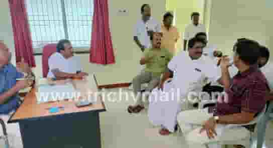 சமயபுரம் கண்ணனூர் பேரூராட்சி சார்பில் வாகன வரி வசூல் ஒப்பந்த புள்ளி டெண்டர் பெட்டியினை சீல் வைத்து மூடாமல் வெறும் பூட்டு போட்டு பூட்டியுள்ளதால் முறைகேடு நடந்துள்ளது எனக் கூறிய ஒப்பந்ததாரரை தாக்க முயன்ற திமுக வினர்.