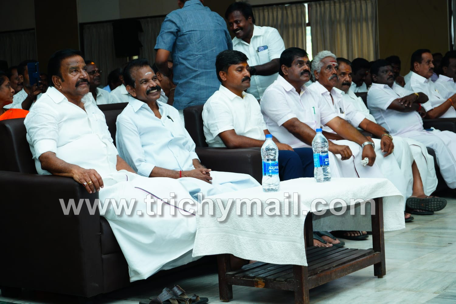 திருச்சி, ஜூன். 1  நாடாளுமன்றத் தேர்தல் வாக்கு எண்ணிக்கை முன்னிட்டு திமுக மாவட்ட செயலாளர்கள் கழக வேட்பாளர்கள் தலைமை முகவர்கள் மற்றும் வாக்கு எண்ணிக்கை முகவர்கள் கலந்தாலோசனை கூட்டம் காணொளி  காட்சி மூலம்   திருச்சி அஜந்தா ஹோட்டலில் நடைபெற்றது. இதில் கழக முத ன்மை செயலாளரும் நகராட்சி நிர்வாக துறை அமைச்சருமான கே என் நேரு , பெரம்பலூர் தொகுதி வேட்பாளர் அருண்நேரு, மத்திய மாவட்ட செயலாளர் வைரமணி, சட்டமன்ற உறுப்பினர்கள் காடுவெட்டி தியாகராஜன், குளித்தலை மாணிக்கம் ,, முன்னாள் எம்எல்ஏ ராமர் , மாநகராட்சி மேயர் அன்பழகன், மதிமுக வெல்லமண்டி சோமு உட்பட பலர் கலந்து கொண்டனர்