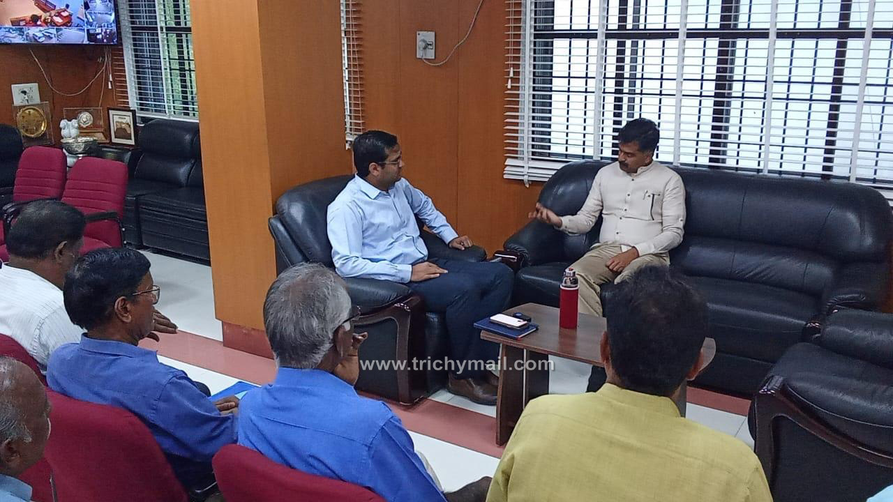 திருச்சி, ஜீலை 23   திருச்சி நாடாளுமன்ற தொகுதியின் முக்கிய நான்கு கோரிக்கைகளுடன், துரை வைகோ எம்.பி. இன்று (23.07.2025) காலை 8 மணி அளவில் மாவட்ட ஆட்சியர் அலுவலகத்திற்கு நேரில் சென்று திருச்சி மாவட்ட ஆட்சித்தலைவர் வே.சரவணனை சந்தித்து  விளக்கம்  அளித்தார்.