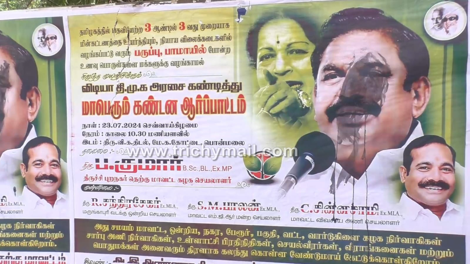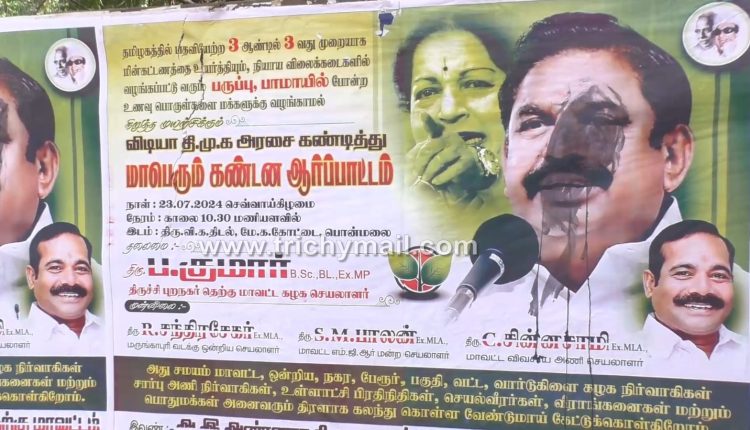 திருச்சி, ஜூலை 25 மணப்பாறையில் எடப்பாடி பழனிசாமி முகத்தில் கருப்பு சாயம் பூச்சு: அதிமுகவினர் காவல் நிலையத்தில் புகார்.