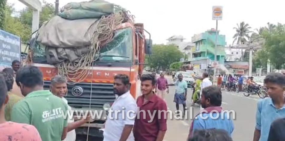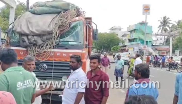 திருச்சி, ஆக. 26  முசிறி அருகே தொட்டியத்தில் டிரைவரின் கட்டுப்பாட்டை இழந்த லாரி மோதி மின் கம்பங்கள், கடைகள் சேதம்