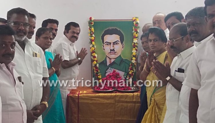 திருச்சி, செப். 11  சுதந்திர போராட்ட வீரர் தியாகி இமானுவேல் சேகரன்  67வது குருபூஜை தினத்தினை முன்னிட்டு  திருச்சி புறநகர் வடக்கு மாவட்ட கழக அலுவலகத்தில் அவரது திருவுருவப்படத்திற்கு  திருச்சி புறநகர் வடக்கு மாவட்ட செயலாளர் மு.பரஞ்ஜோதி   தலைமையில் மலர் தூவி மரியாதை  செலுத்தப்பட்டது.