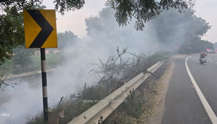 சாலையோரம் எரிக்கப்பட்ட கழிவுகளால் அடர்ந்த புகை பரவி, அந்த வழியாக செல்லும் வாகன ஓட்டிகள் மற்றும் பொதுமக்கள் சிரமத்திற்கு உள்ளாகி வருகின்றனர்.