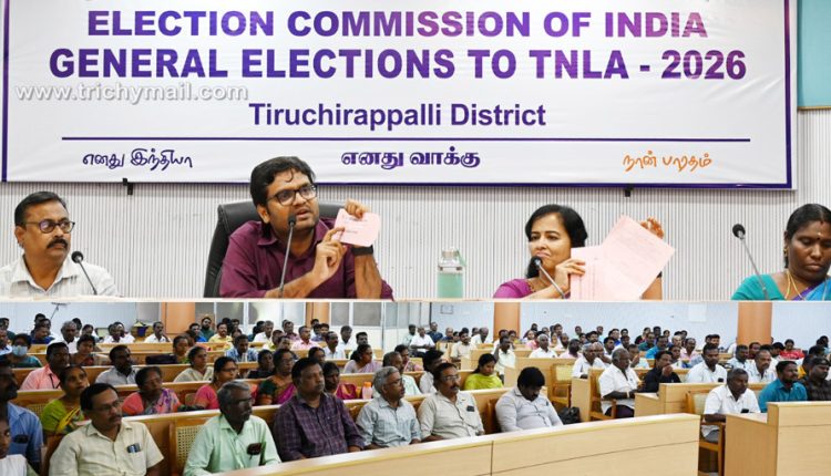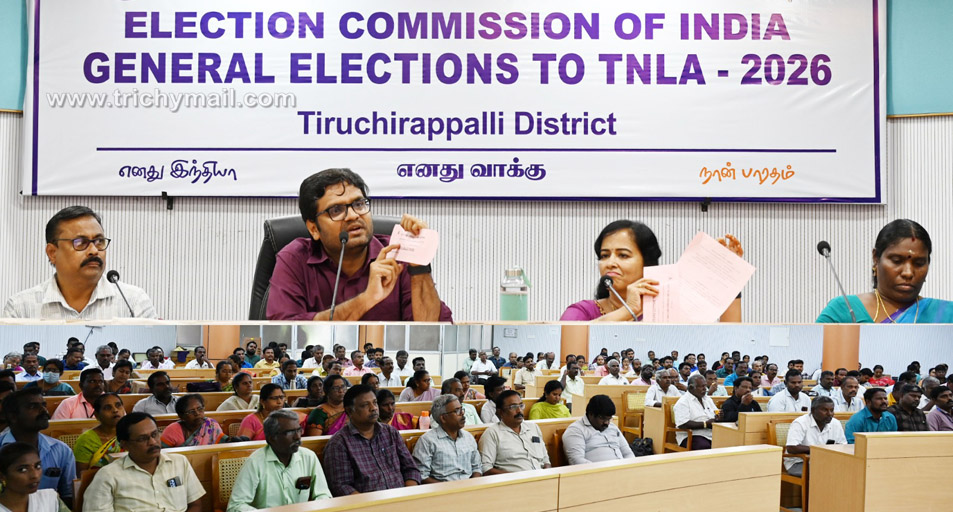 திருச்சி, ஏப்.8 திருச்சி மாவட்டத்திலுள்ள 9 சட்டமன்ற தொகுதிகளிலும் உள்ள 85 வயதிற்கு மேற்பட்ட மூத்த குடிமக்கள் மற்றும் மாற்றுத்திறனாளிகளுக்கு இந்திய தேர்தல் ஆணையத்தின் அறிவுறுத்தலின்படி வீட்டில் இருந்தே தபால் வாக்குப் பதிவு செய்வதற்கான வசதிகள் குறித்து மாவட்ட ஆட்சியர் அலுவலக கூட்டரங்கில் நுண்பார்வையாளர்கள், வாக்குப்பதிவு தலைமை அலுவலர்கள் மற்றும் உதவி வாக்குப்பதிவு அலுவலர் ஆகியோருக்கான பயிற்சி வகுப்பு மாவட்ட தேர்தல் அலுவலர், மாவட்ட ஆட்சியர் வே.சரவணன் தலைமையில் நடைபெற்றது. இந்நிகழ்வில் கூடுதல் மாவட்ட தேர்தல் அலுவலர்கள் ஆர்.பாலாஜி(மாவட்ட வருவாய் அலுவலர்), கோ.செந்தில்குமாரி(டாஸ்மாக் முதுநிலை மண்டல மேலாளர்), சி.முத்துமாரி (மாவட்ட வருவாய் அலுவலர், ஆவின்) நுண் பார்வையாளர்கள், வாக்குப்பதிவு தலைமை அலுவலர், உதவி வாக்குப்பதிவு அலுவலர் ஆகியோர் கலந்து கொண்டனர்.