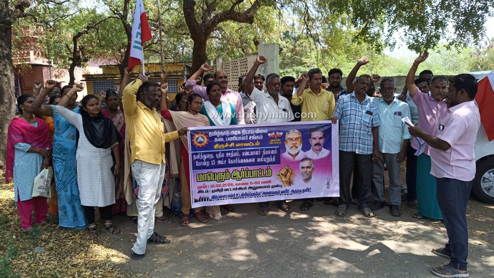 திருச்சி, பிப்.12 முசிறி வட்டாட்சியர் அலுவலகம் முன்பாக தமிழ்நாடு அரசு நியாய விலைக் கடை பணியாளர்கள் சங்கத்தின் சார்பில் கோரிக்கைகளை வலியுறுத்தி மாநிலம் தழுவிய ஆர்ப்பாட்டம் நடைபெற்றது.