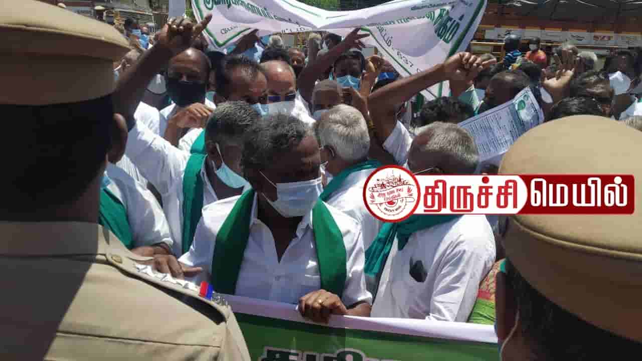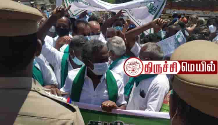 காவிரியில் புதிய நீரேற்று பாசனத்திற்கு அனுமதி அளிக்க கூடாது, காவிரியில் புதிதாக எந்த ஒரு திட்டத்தையும் செயல்படுத்த கூடாது உள்ளிட்ட பல்வேறு கோரிக்கைகளை வலியுறுத்தி தமிழக அனைத்து விவசாயிகள் சங்கங்களின் ஒருங்கிணைப்பு குழு தலைவர் பி.ஆர் பாண்டியன் தலைமையில் திருச்சி சுப்ரமணிபுரத்தில் உள்ள பொதுப்பணித்துறையின் தலைமை பொறியாளர் அலுவலகம் முன்பாக 50க்கும் அதிகமான விவசாயிகள் முற்றுகை போராட்டத்தில் ஈடுபட்டு வருகின்றனர்.