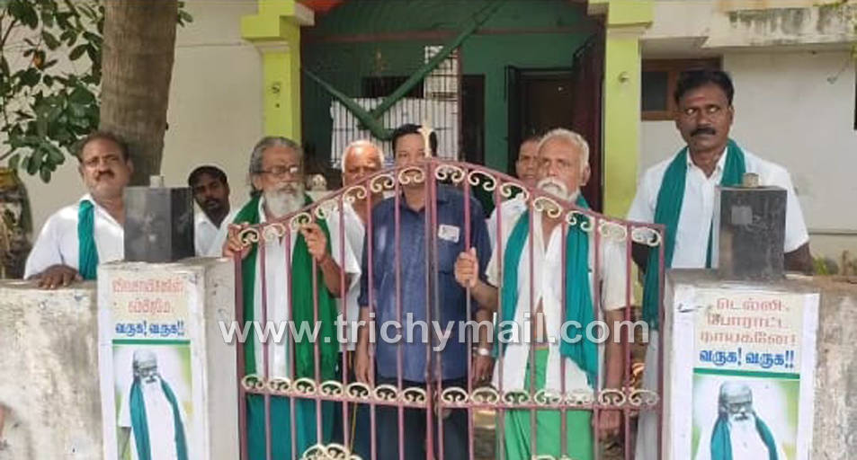 திருச்சி, ஜூன் 1 விவசாயிகளை கன்னியாகுமரி சென்று தியானம் செய்ய விடாமல் தடுத்ததாலும், இலாபகரமான விலை கொடுக்காமல், நதிகளை இணைக்காமல், விவசாய விளைபொருட்களுக்கு இரண்டு மடங்கு இலாபம் தருவதாக அளித்த வாக்குறுதியை நிறைவேற்றாத பிரதமர் மோடி திருச்சி வருகையையோட்டி ஏர்போர்ட் உள்ளே நுழைந்து விமான மறியல் செய்ய இருந்த தேசிய தென்னிந்திய நதிகள் இணைப்பு விவசாயிகள் சங்க மாநில தலைவர் அய்யாக்கண்ணு தலைமையிலான விவசாயிகளை தலைமை அலுவலகத்தில் காவல்துறையினர் வெளியில் வர விடாமல் வீட்டு காவலில் அடைத்து வைத்துள்ளனர்.